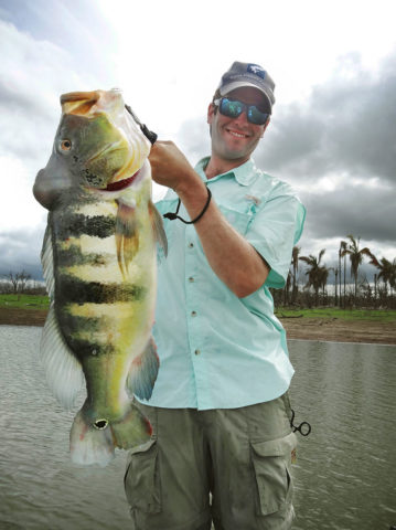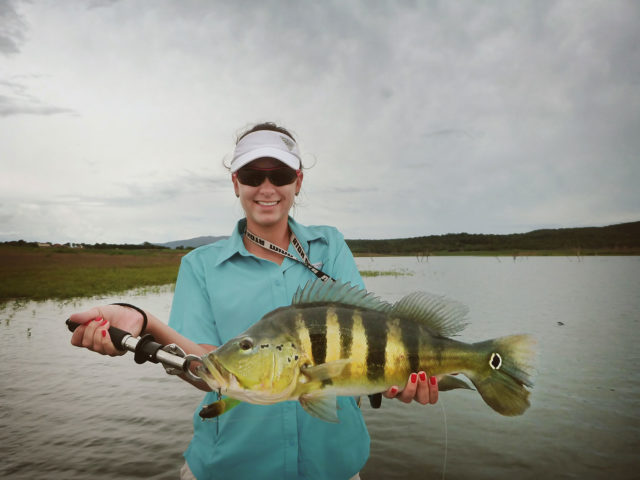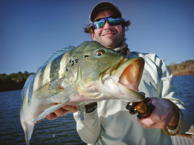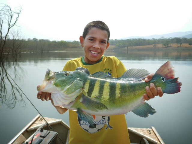 O objetivo principal dos pescadores em Serra da Mesa são os grandes Tucunarés Azuis .
