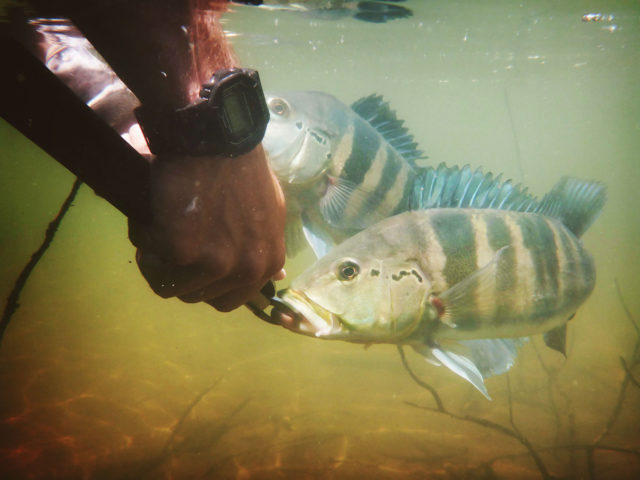 • Manusear o peixe o mínimo possível, no caso do tucunaré o uso do alicate de contenção é recomendado